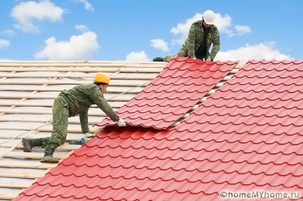 After carrying out a number of preparatory work, you need to start installation. The installation steps are as follows: installation of rafters, laying of battens, flooring of insulating materials and the main roof. Each stage must be thought out in advance: all the necessary tools and some of the materials are raised to the roof for easy access to them. With this approach, there will be no downtime and delays, which will guarantee the completion of the work on time.