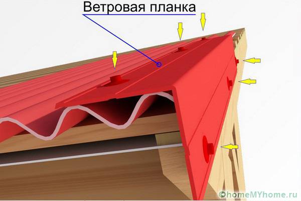 At the final stage, the end parts of the roof are sheathed at the slopes of the slope.