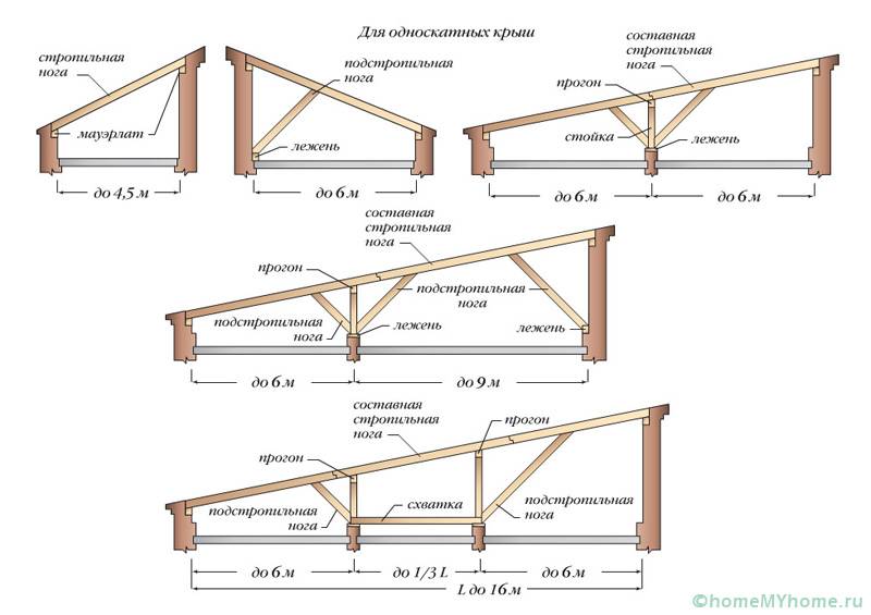 The device of single-pitched roofs is quite simple and includes the following units: