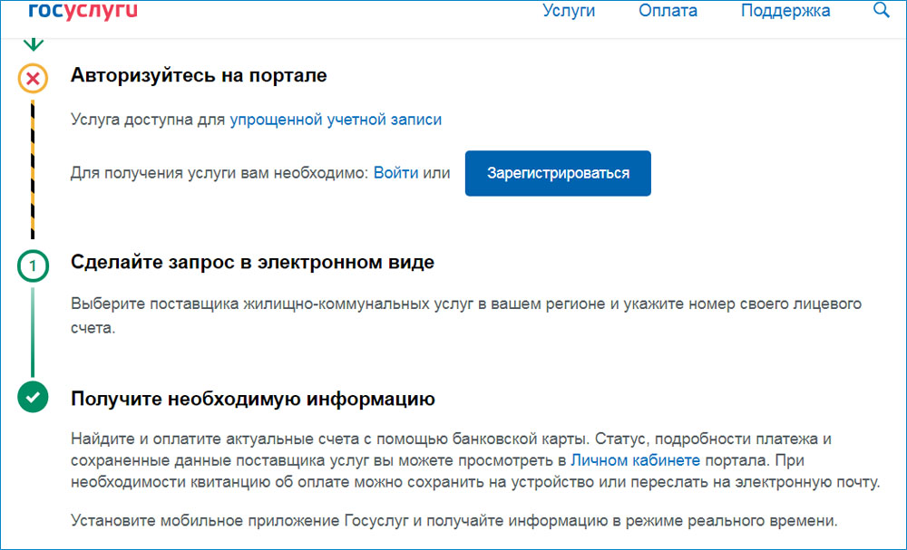 First, register if you haven't already. Registration takes place in three stages, but it is better to do everything once, and then use a convenient service in many areas of life.