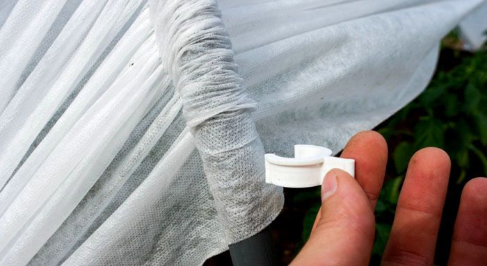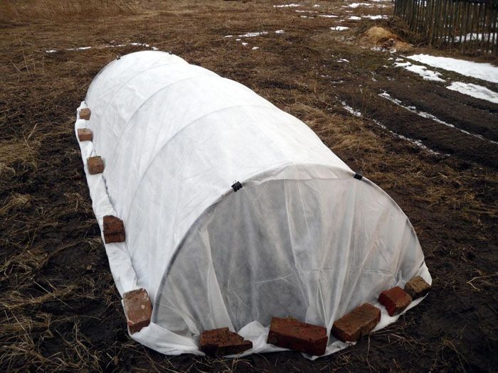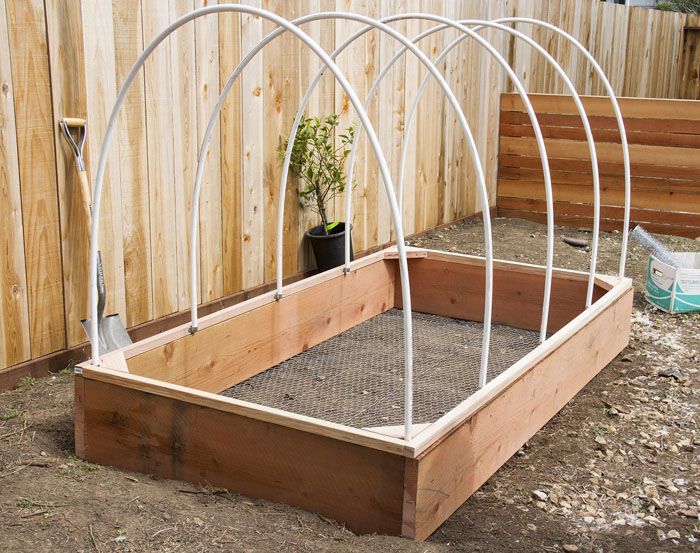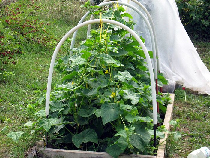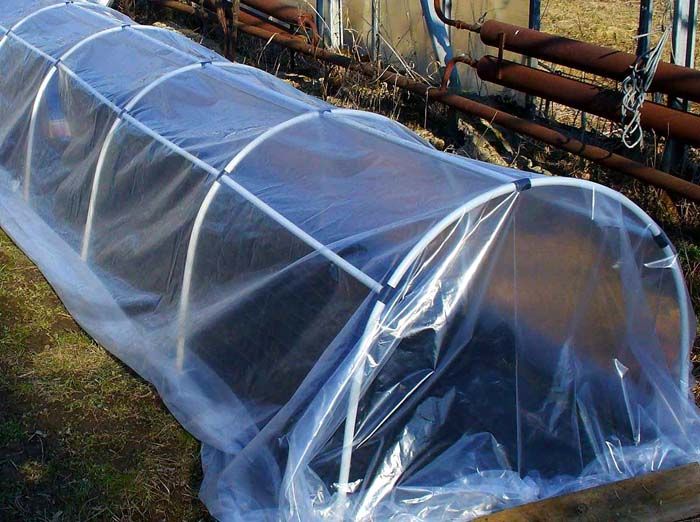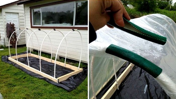 In the photo above, a budget version of a greenhouse, assembled from a box-base and curved pipes.
