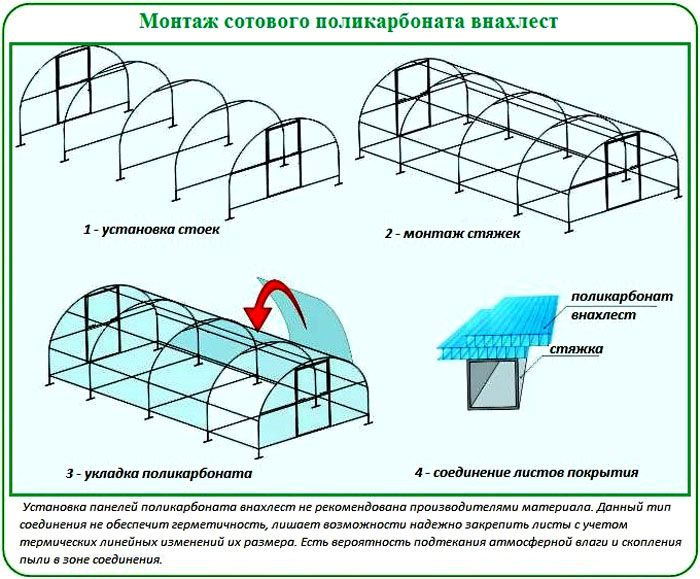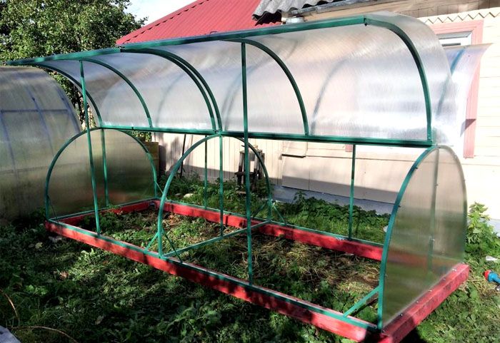 Do-it-yourself polycarbonate greenhouse assembly for cucumbers looks like this: