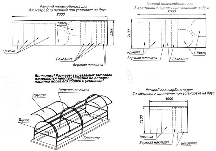 To get an excellent result, you need to pay attention to the recommendations for assembling and installing the frame. It is recommended to use polycarbonate honeycomb sheets with a thickness of 4-6 mm. Polycarbonate is a material that does not allow air to pass through, therefore, even at the stage of drawings, the problem of ventilation is solved, as well as the access of water to the greenhouse.