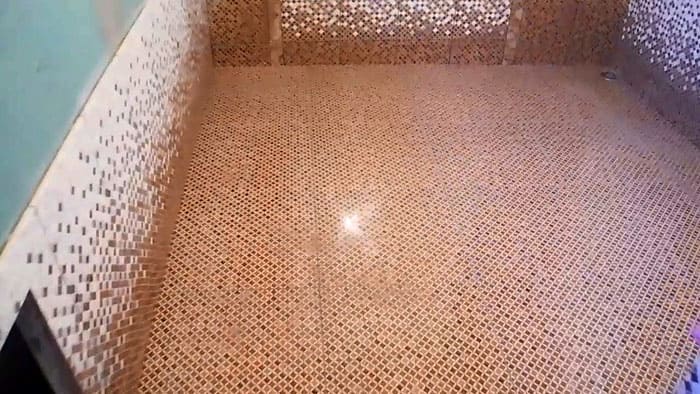 The price of a mosaic bathroom tile depends on the matrix size and thickness. The photo does not show the joints, therefore the size is selected based on area lined room and convenience of work.