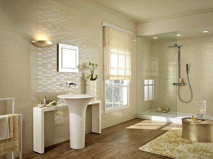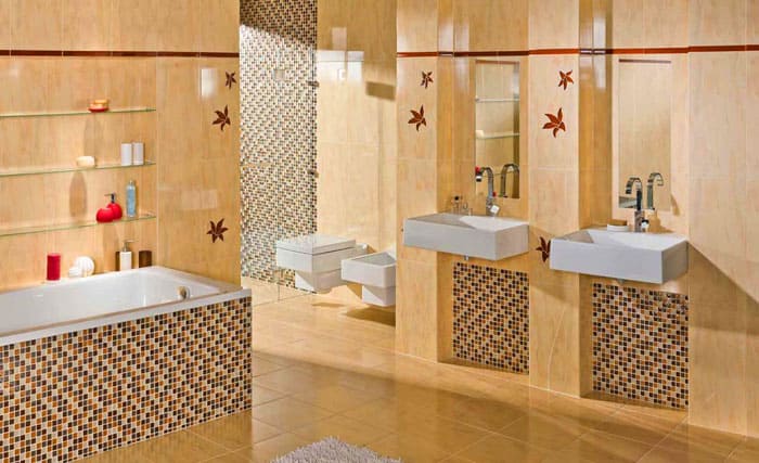 This is the least expensive way to decorate bathrooms beautifully. The installation of such a tile is the most common, not requiring special skill. It is a plastic material that should remain intact for about 10 years. The positive qualities of such tiles include fire safety, hygiene and wear resistance. But, nevertheless, this is not the most common option in the bathroom.