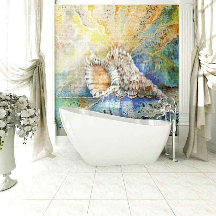 - 2 Types of bathroom mosaic tiles: material of manufacture