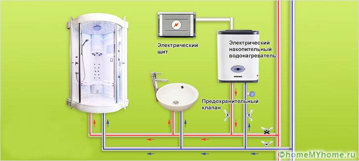 - The ability to connect several points to a flat storage electric water heater of 50 liters at once, which allows you to organize the supply of hot water at the same time to kitchen taps and a shower.
