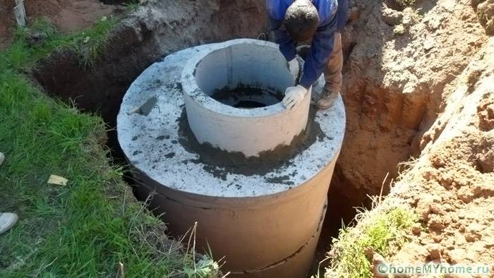 Due to the heavy weight of the reinforced concrete rings, the installation process is quite complicated. At smaller sizes, the elements have a greater mass. They have to be lowered into the pit by the forces of several people or with the help of special equipment.