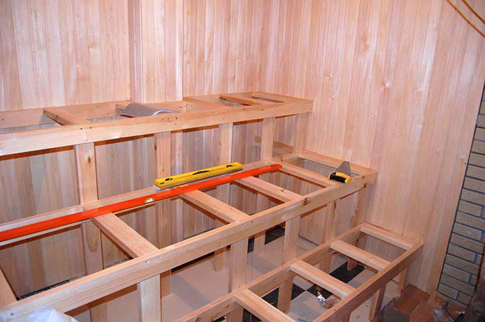 Depending on whether you are equipping a steam room or ennobling a sauna, the instructions for constructing shelves will differ significantly. Let's consider a step-by-step algorithm with a photo for each type of bath.