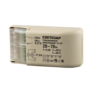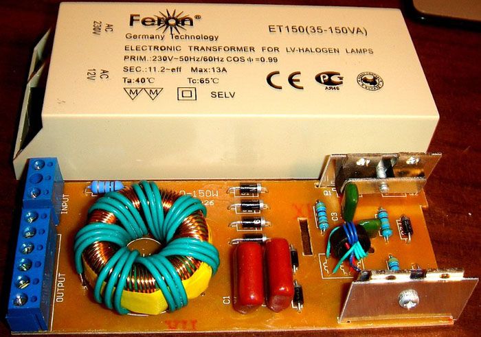 The above circuit of an electronic transformer can be used to connect halogen lamps and other light sources operating at a voltage of 12 volts.