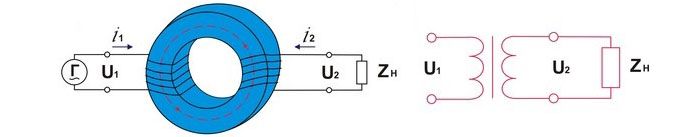 - EMF creates a potential difference on the secondary winding (U2 on the diagram) and as a consequence - the presence of electric current "i2»With a connected load (Zn on the diagram).