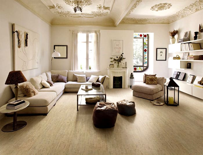 Cork flooring is unique and can be used in almost any room, especially living room.