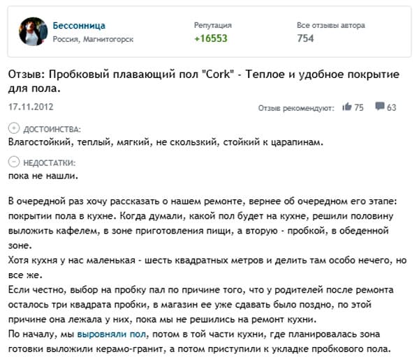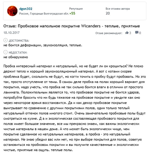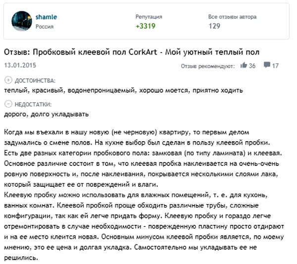 Customer reviews of cork flooring