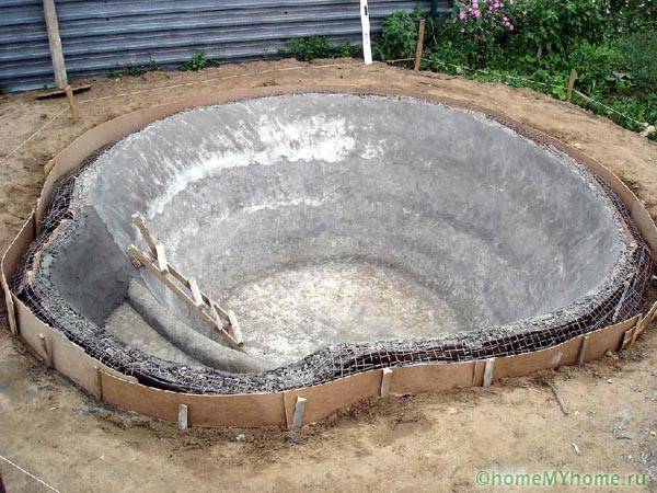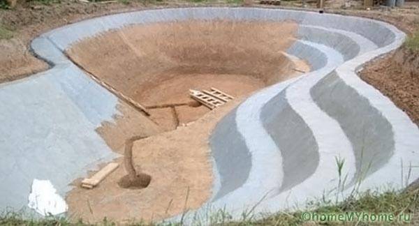- concrete lake - the structure is considered the most durable only if measures are taken to exclude frost swelling of the adjacent soils, therefore, ring drainage is necessary, waterproofing of the underlying layer before pouring a multi-stage structure, concrete surfaces after the material has gained 70% strength.