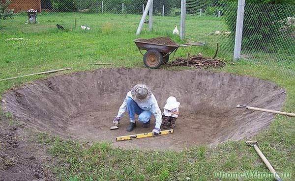 When buying a polymer, fiberglass bowl with ready-made shapes, the technology is almost the same. However, the contours of the excavated pit must fully correspond to the bottom of the structure.