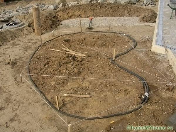 - depth differences - for each section, a similar marking with a rope is created, the soil is removed, removed from the section, the depth transitions are leveled with a shovel;