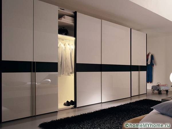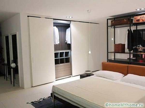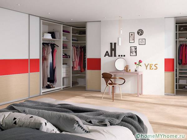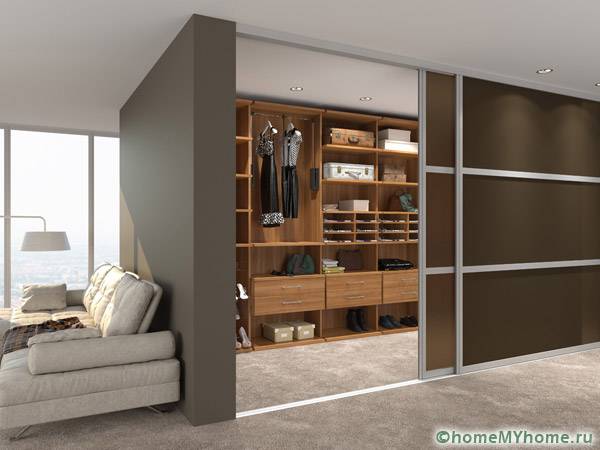 Dressing rooms have become an integral part of modern apartments, where entire rooms are allocated for them. When there is not enough space, the place to store shoes, clothes and accessories becomes closetwhich also uses sliding doors.