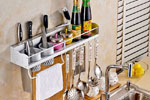 There are accessories such as spice cups, ladle holders, spice shelves, tiered lid shelves. How the railing system will be completed is up to you.