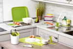Interesting accessories for the kitchen: range hood and lighting, interesting appliances, coasters and fixtures, cabinets and drawers, clocks, twigs, original accessories for table setting and much more.