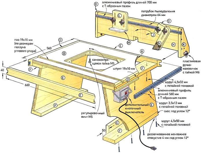 - For convenience and the ability to quickly turn off the router in case of non-standard situations, you can install an additional control button directly on the table surface (emergency button of the "mushroom" type).