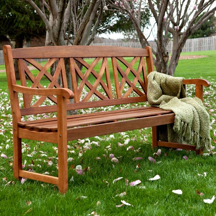 Note! The wood bench can be used comfortably at any time of the year, since the level of thermal conductivity is lower than that of stone and metal.