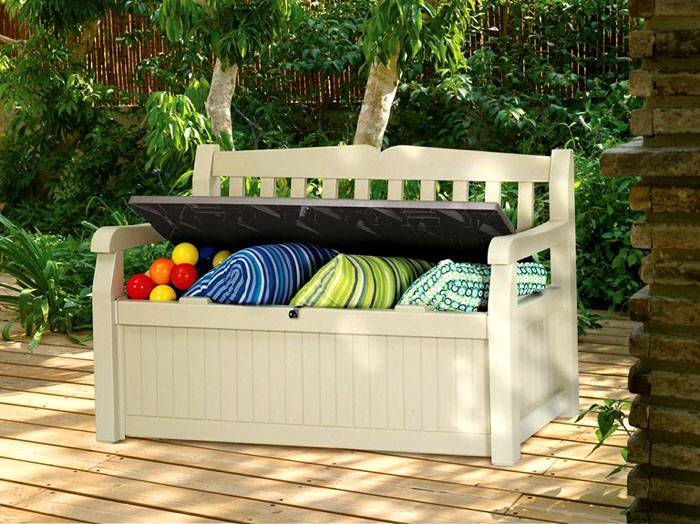 A bench with a drawer is a wonderful solution for a loggia and a balcony. In this case, you can use the old balcony. The drawer design consists of two walls, a seat and sides. It is also recommended to make the bottom of the box. Metal corners must be used as fasteners.The structure can be varnished. And in order to make it comfortable to sit, additionally place soft pillows.