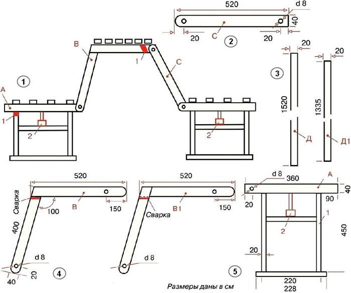 Drawings of a garden bench with a back made of wood with your own hands: a transformer option