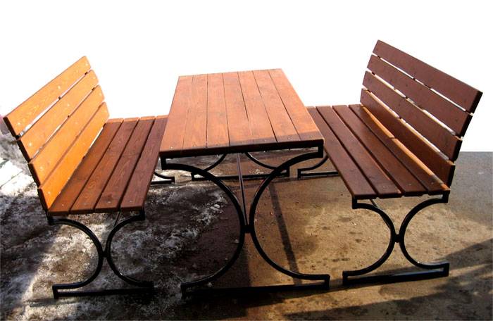 This will protect the wooden surface from the development of mold, mildew, and sunlight. It is rare that anyone uses completely metal products, since they cool down a lot in the cold season and heat up in the heat. Most often, load-bearing elements and legs are made from this material, and the back and seat are made of wood.