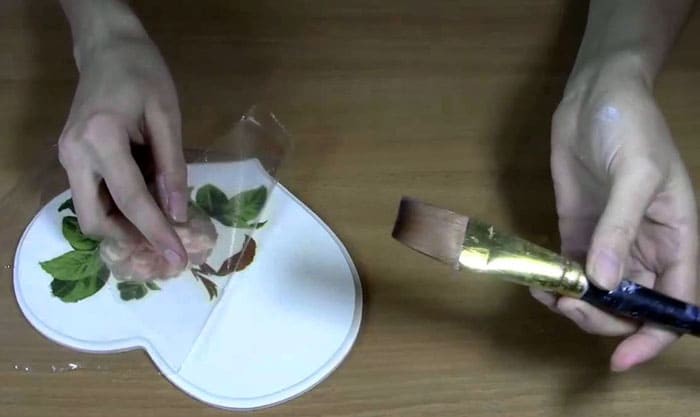 The task is to glue only the top layer with the image, which is complicated by its thinness and literally translucency. There can be no question of imposing two layers at once. Napkins are glued in different ways: by the file method, fan brush and glue stick.