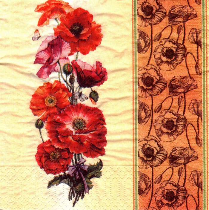 You can buy these handkerchiefs at a craft store or at large chain stores. The size of the product is 21 × 21 cm². Here, too, the same pattern can be found in the package, but with different sizes. This option is suitable for decorating a collection in a uniform style.