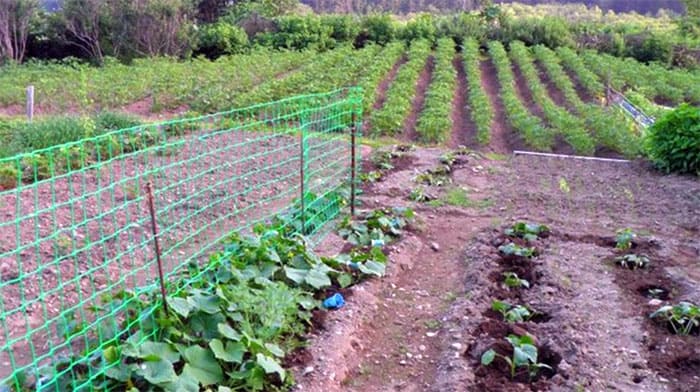 From below, the mesh is slightly buried in the ground, pressing with metal hooks or U-shaped wire brackets. It is advisable to stretch a tape or twine along the upper part so that it does not stretch.
