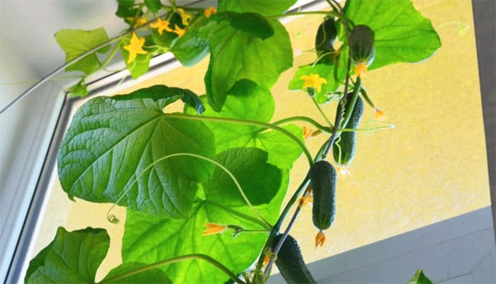 How to tie cucumbers grown on a windowsill at home