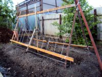 You can install a seasonal structure on each bed, the second option is mobile props, which are easily dismantled at the end of the season and sent to the shed for storage. The main advantage of the A-shaped configuration is that it can be braided from both sides.