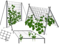 Under the simple word trellis, a large number of structures are combined, thanks to which the harvest of cucumbers ripens evenly, and it is much more convenient to collect them from the supports. When choosing a support configuration, one should take into account the number of bushes, the length and width of the beds, and the characteristics of the variety.