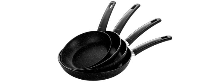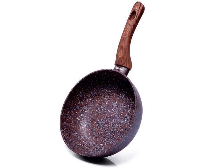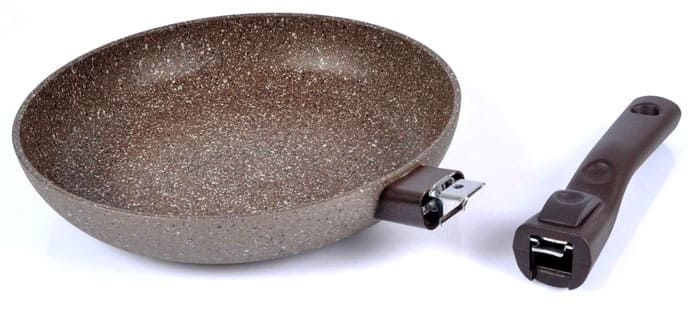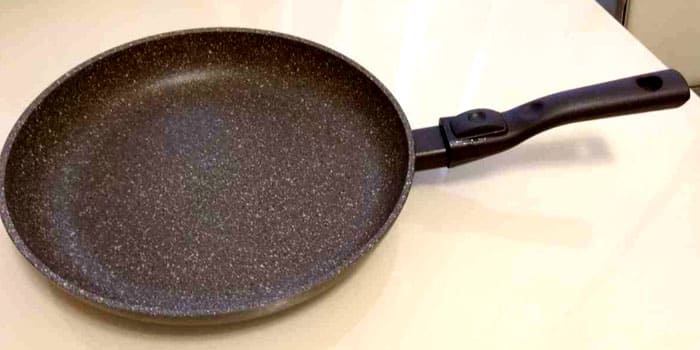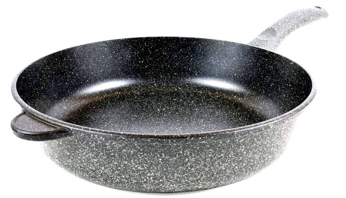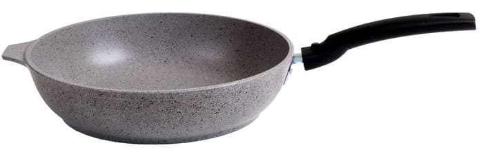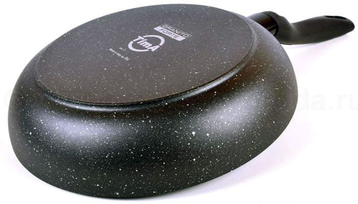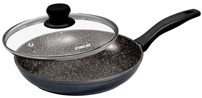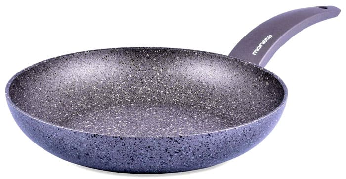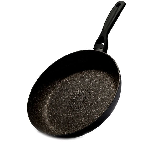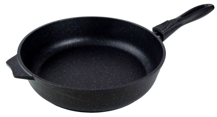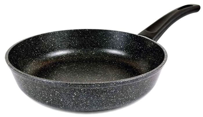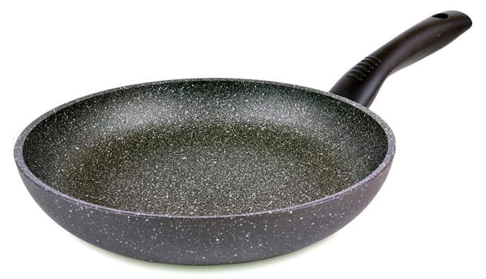 If you are looking for the most inexpensive frying pan of this range, then this is the option. As a coating, polymer and stone chips from granite or marble are applied.
