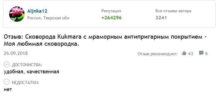 Another excellent model will be the frying pan of the Russian company Kukmara: KUKMARA "Marble" (sms246a).