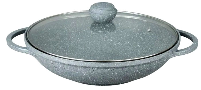 What about the lids? Almost all housewives use them, because food heats up and cooks under them much faster, and when stewing, this item is completely irreplaceable. Both glass and metal lids with a steam outlet are suitable for the stone-coated pan.