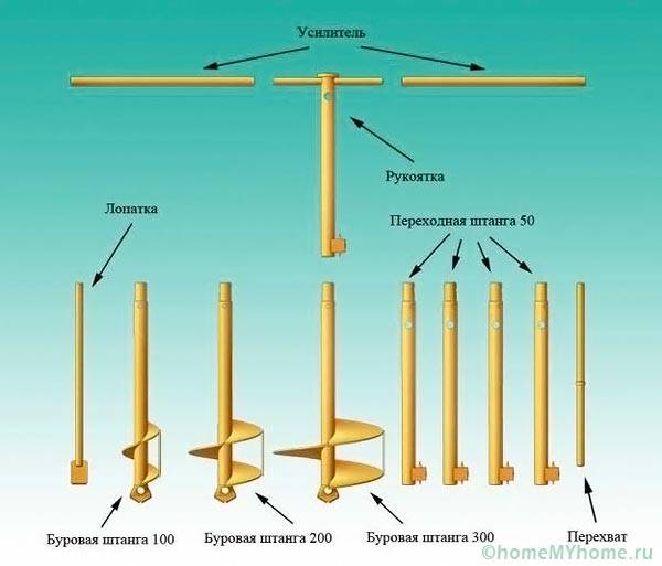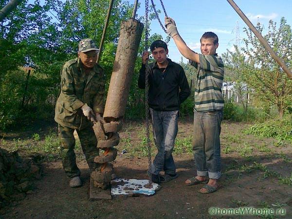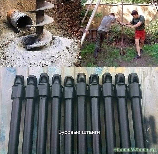 - drilling - the height of the hand drill does not allow reaching, even the horizons of the upper water, therefore, after deepening by 1 - 1.5 m, the rod is extended by the next section;
