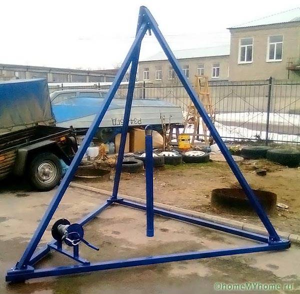 - a tripod - 1.5 - 2 m high, is mounted on the mouth, a traveling block is fixed in the upper part;