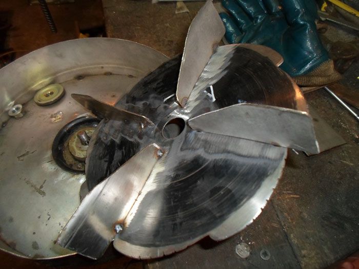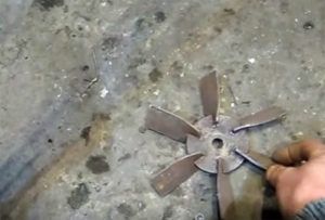 First, the nodes are made separately, and then assembled into a whole unit. Rotors are made of sheet metal. It is necessary to draw circles on the sheets using a compass. To make the blades, you need to take a part from an electric motor as a basis. The blades are welded to a steel disc. To assemble the frame, you need to weld pieces from a metal corner. All elements of the frame are fixed with bolted connections.