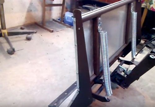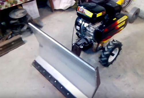 The use of motoblocks for equipping a snowplow is also popular. Mounting a homemade snow blower to a walk-behind tractor involves attaching the engine to a quick-release platform.