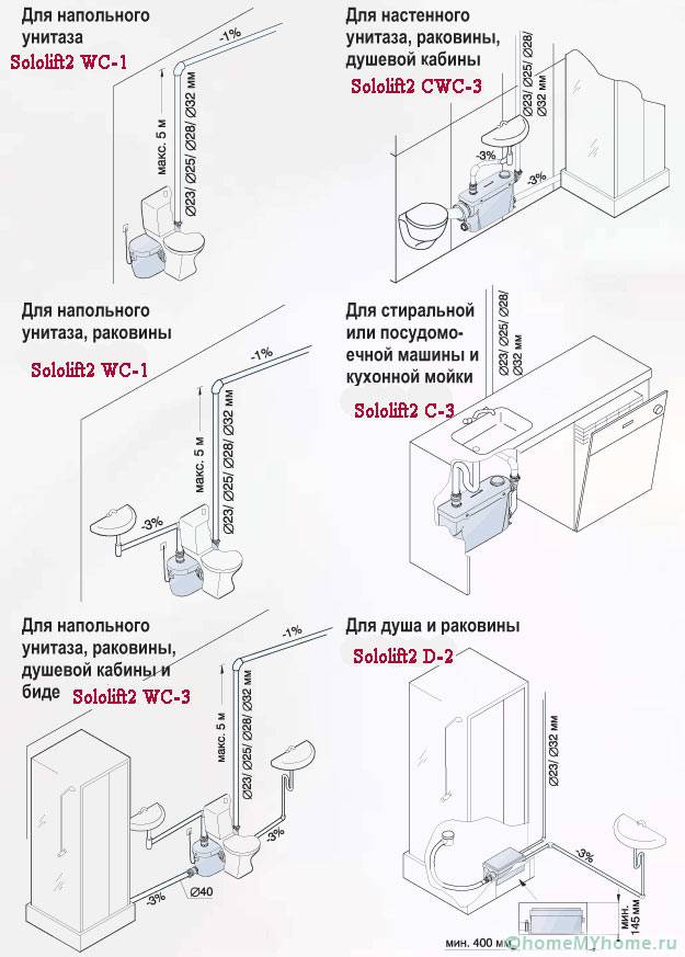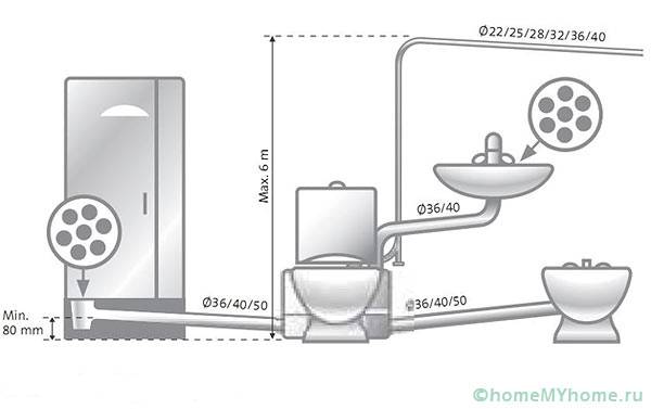 Perhaps the most important advantage of these devices is the wide possibilities for redevelopment, because you do not need to worry about the height difference to ensure a slope to the sewer riser, and the possibilities for placing engineering plumbing increase many times over.