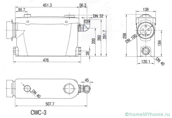 In most cases, the sewerage sololift is designed for a volume of water of 3-5 liters, so its body is small. At the same time, the flow rate of sewage is at least 40 liters per minute, which exceeds the ability to drain any plumbing device. Therefore, there is no need for a large cistern.