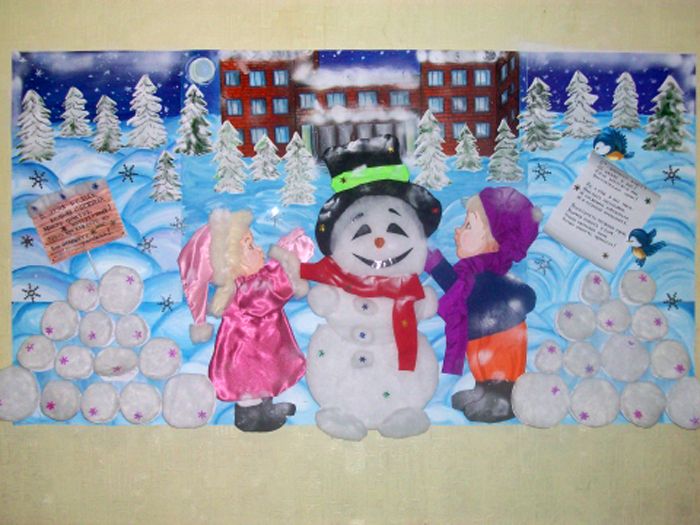 If you cut out snowmen and a place for an inscription along the contour, you get an original wall newspaper for the New Year!