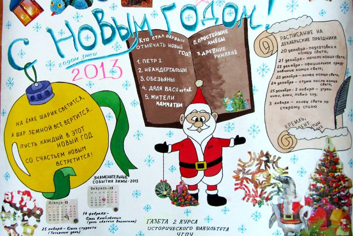 And the students who drew this poster have already graduated from the institute and have become specialists, and the wall newspaper still walks through the vastness of the network and suggests what content should be placed on whatman paper. Everything has its own part: here is a series of holidays, a small winter calendar, and a humorous test