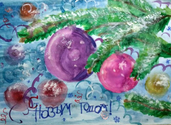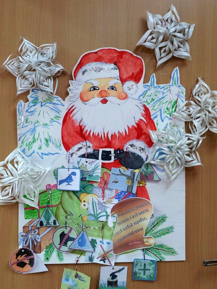 In creating a poster, you can also use different techniques and decorate the work with tinsel, rain, cut-out snowflakes and sparkles.
