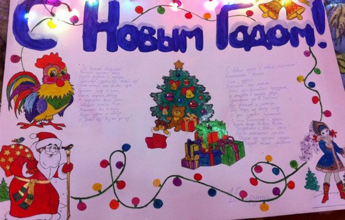School, college, institute - everywhere, students will be pleased to admire the bright cheerful posters for the New Year. Even if a student pretends not to notice such art, this is not so: on the contrary, interest in other people's creativity appears, and who knows, maybe next year there will be more wall newspapers? Schoolchildren are even more willing to get involved in work, you just need to help them choose content, images and suggest successful ways to translate their ideas.