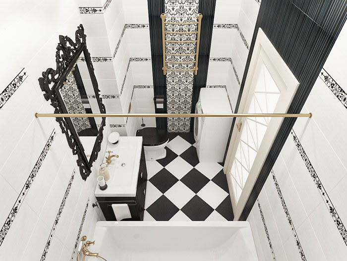 The monumentality and luxury of art deco is also suitable for the bathroom. Spectacular patterns and geometry make it possible to decorate the bathroom with extraordinary sophistication.
