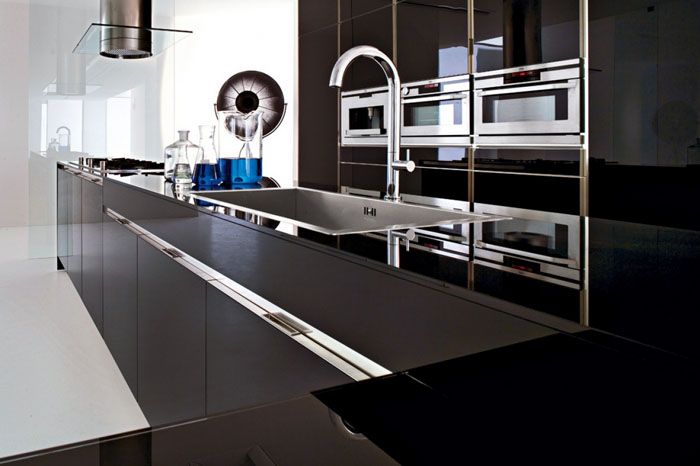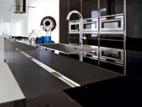 The Hi-Tech kitchen is literally crammed with all sorts of innovations in the field of household appliances. It is a pleasure to work in such an automated kitchen. It is this room that makes it possible to bring to life all high-tech ideas: a lot of built-in appliances and a multifunctional kitchen set.