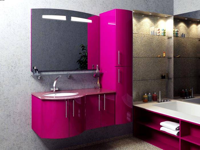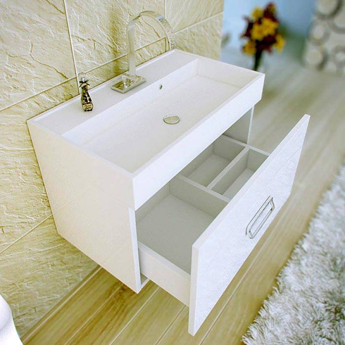 It is very important to choose a vanity unit with an overhead bowl, in which you can combine both storage of items and an interior solution for the room. In addition, it will hide all plumbing items from prying eyes and counters.